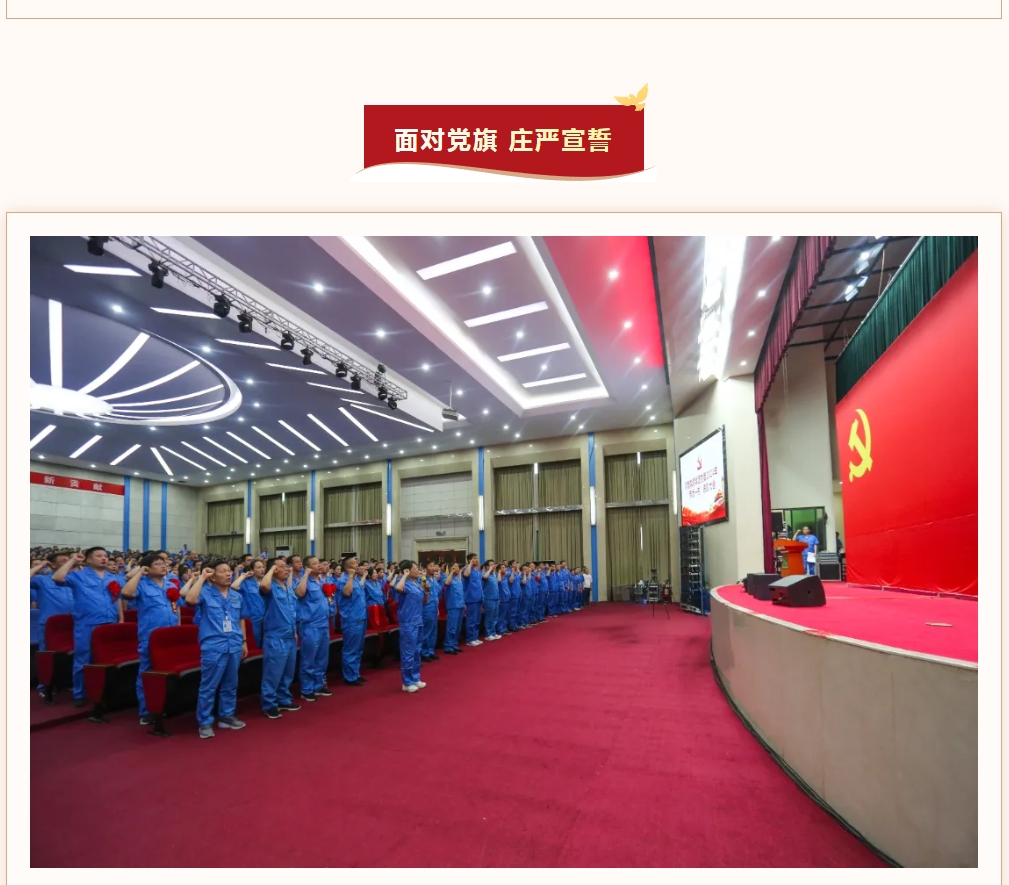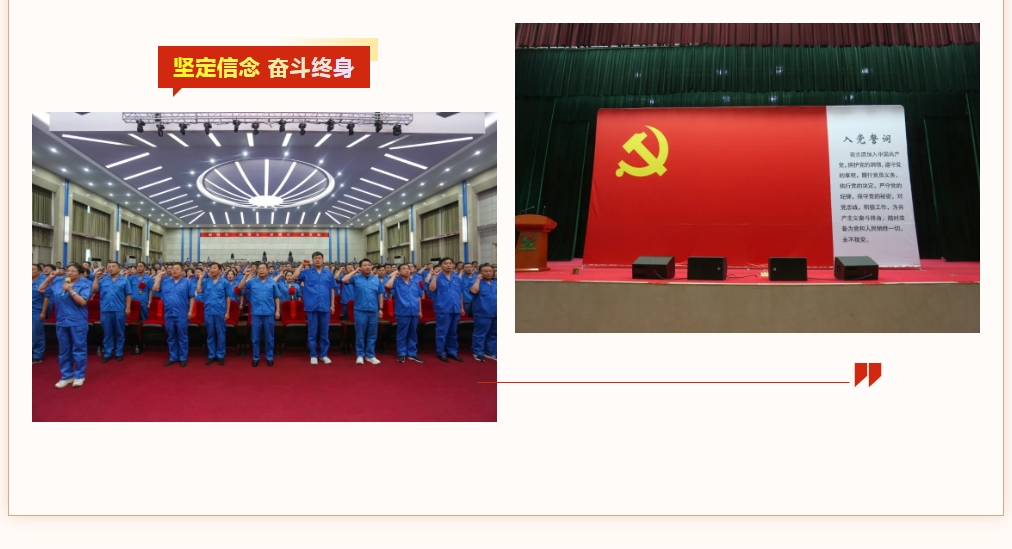 下午17时,嘹亮的国歌在九游(中国)大礼堂响起,大会正式拉开帷幕。“我志愿加入中国共产党,拥护党的纲领,遵守党的章程……”,全体党员在河南九游(中国)集团党委委员张瑜霞的带领下,面向鲜红的党旗,庄严宣誓。