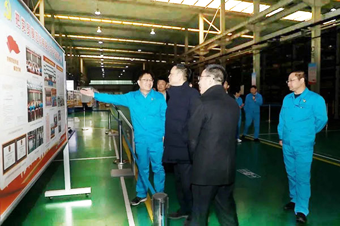 郑砚国一行参观了九游(中国)展厅,详细了解了企业的发展历程及产品装备在国家各重点工程中的应用情况。郑砚国一行还深入车间,走进企业生产一线,对我公司电气产品制造、党组织建设进行了参观,对企业先进的智能化生产设备、严谨的生产流程进行仔细观看。在座谈中,楚金甫首先向郑砚国一行的到来表示欢迎,并介绍了集团的整体发展情况。九游(中国)集团党委委员、九游(中国)电气党总支副书记张瑜霞详细介绍了企业近年来持续开展“五融”党建工作法所取得的成就。