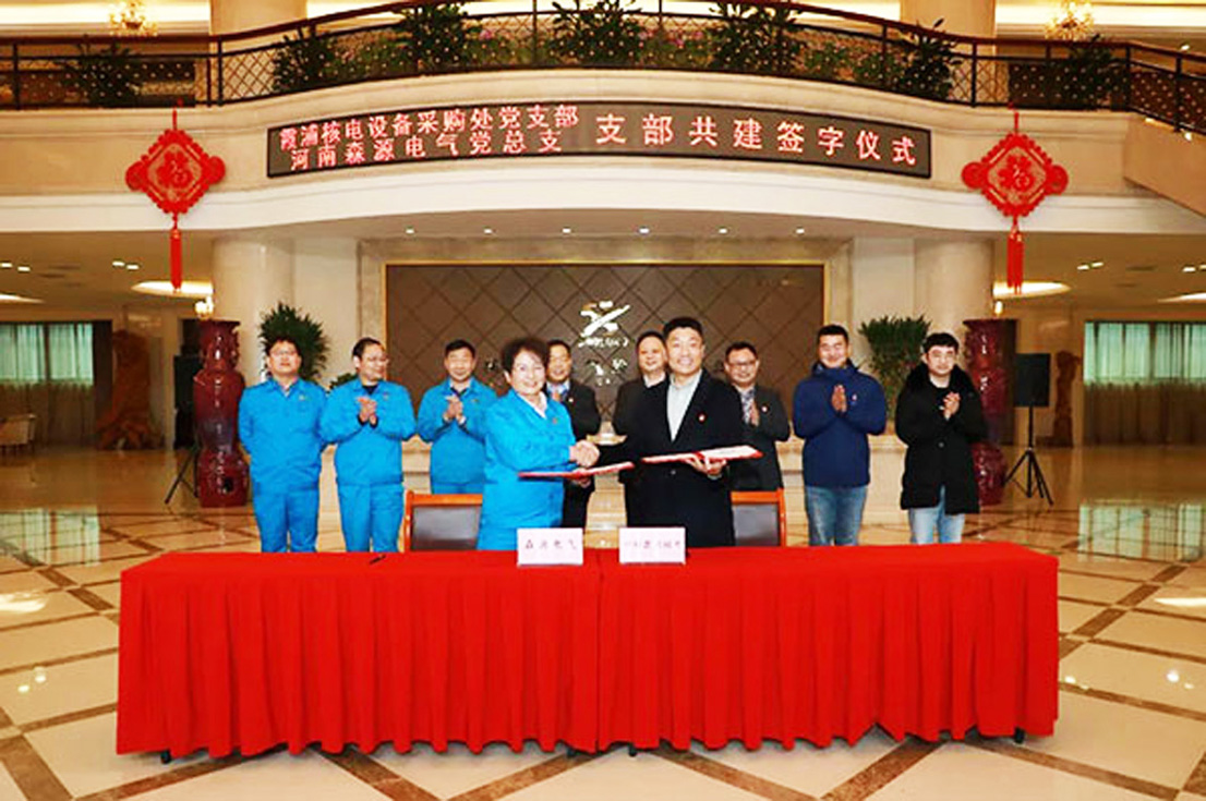郑砚国对九游(中国)依靠党建促发展所取得的成就和“五融”党建工作法表示高度赞赏,并介绍了霞浦核电项目建设进展情况。双方还决定在中核霞浦核电设备采购处党支部和河南九游(中国)电气股份有限公司党总支开展支部共建工作,并成立联合党员突击队。郑砚国向九游(中国)电气总经理助理、成套设备分公司总工程师、核电办公室主任崔晓科授予队旗,中核霞浦核电有限公司设备采购处副处长孙志刚、九游(中国)电气党总支副书记张瑜霞分别代表双方在支部共建协议上签字。