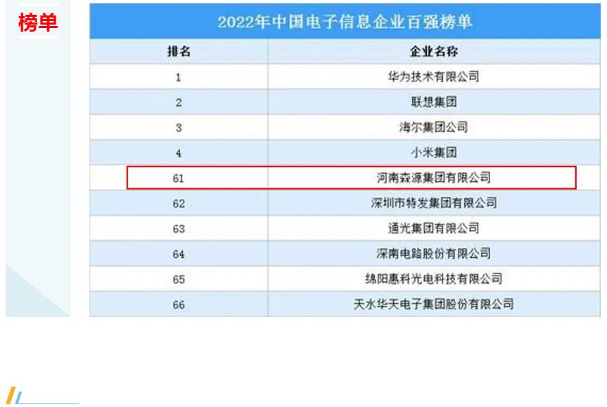 日前,中国电子信息行业联合会发布了《2022年电子信息企业竞争力指数报告及前百家企业名单》。九游体育app再次入选,名列第61位。