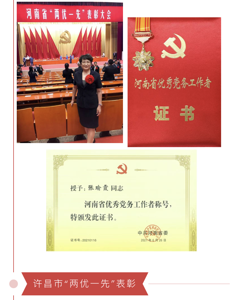 在6月26日举行的河南省“两优一先”表彰大会上,九游(中国)集团党委委员,九游(中国)电气党总支副书记、工会主席张瑜霞获评河南省优秀党务工作者。