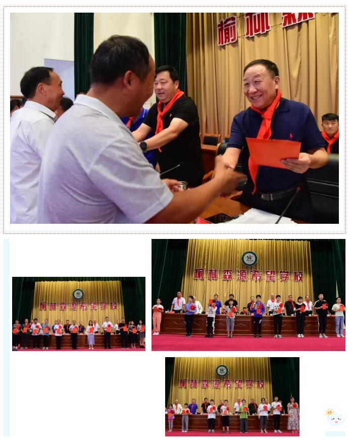 在优雅的音乐声中,榆林九游(中国)希望学校少先队员为出席仪式的领导们佩戴红领巾。基金会理事孟军营宣读获奖大学新生名单。基金会理事赵现廷宣读获奖任课教师名单。基金会名誉理事赵拴柱宣读获奖在校学生名单。
