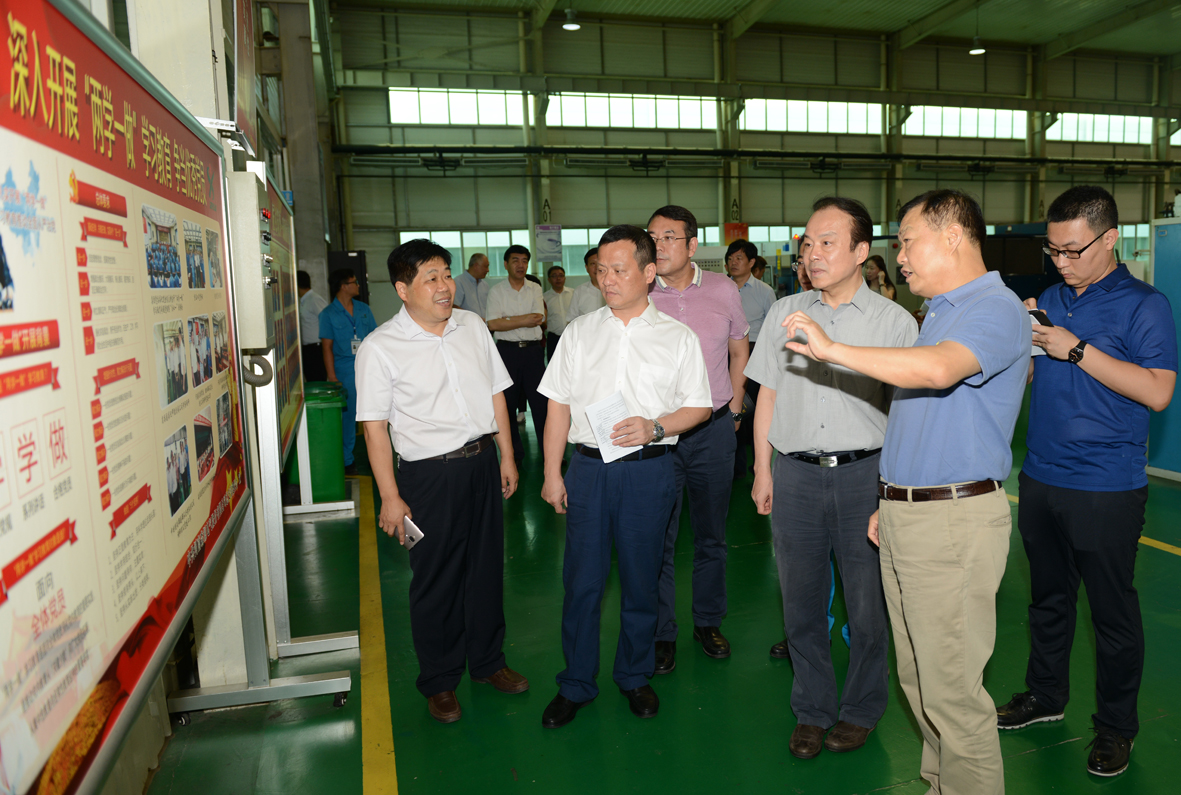 在九游(中国)电气,何平一行深入车间调研了公司智能化的装备和生产情况。在公司通过集成创新打造的钣金柔性智造系统和折弯机器人工作站旁,何平驻足细看;在变压器制造基地和智能断路器生产线旁,何平认真观摩;在机器人工程研究中心,何平走下观光车仔细观看,并详细询问了其研发生产情况。得知公司的机器人核心技术全部来自于自主研发,何平给予高度评价。