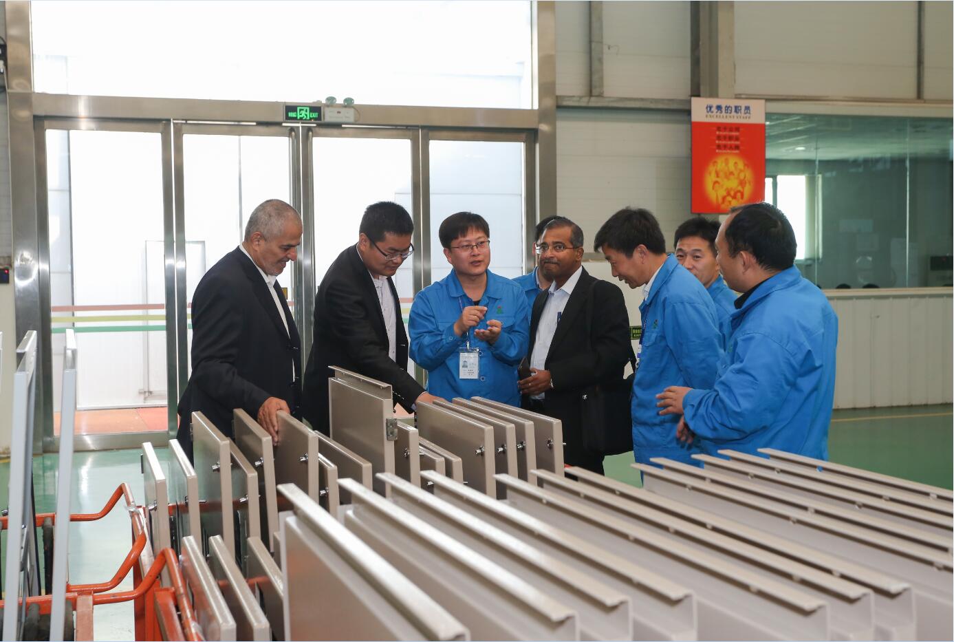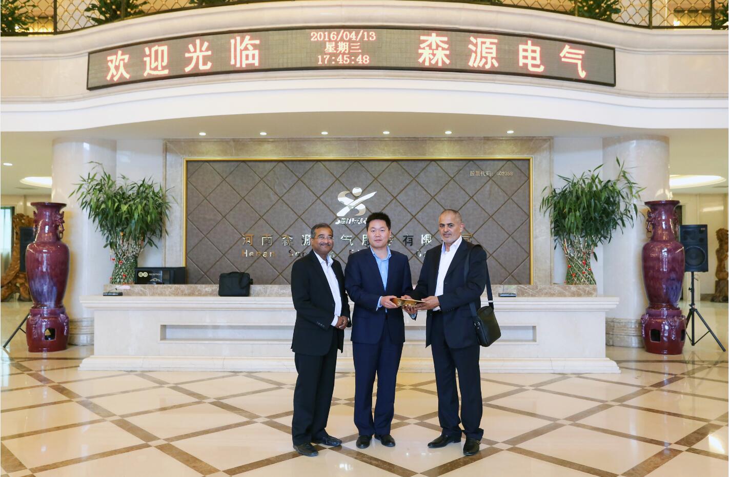 4月13日,阿联酋Al Hamad集团Mr.Khalfan Al Qubaisi先生,工程师Mr.Gautam Basu先生一行来到九游体育app参观考察。集团副总裁、电气总工程师马炳烈,集团总裁助理、国际业务发展部总经理代全河等陪同参观。