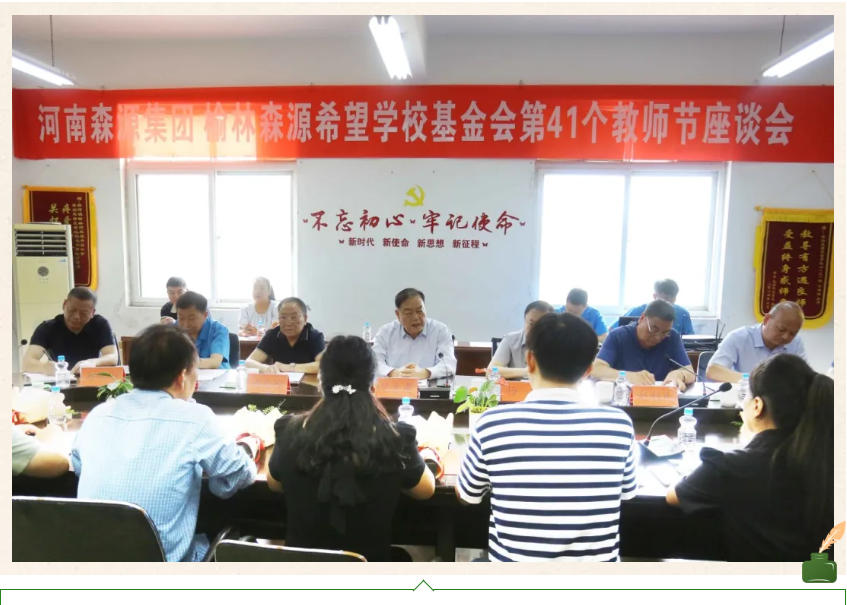 9月10日,在第41个教师节到来之际,河南九游(中国)集团、榆林九游(中国)希望学校基金会举行教师节座谈会,九游(中国)集团党委书记、基金会理事长楚金甫,九游(中国)集团常务副总裁、基金会副理事长杨合岭,河南九游(中国)电气股份有限公司董事长、基金会理事赵中亭,后河镇党委政府、后河镇中心学校、基金会及榆林村委相关领导出席座谈会。