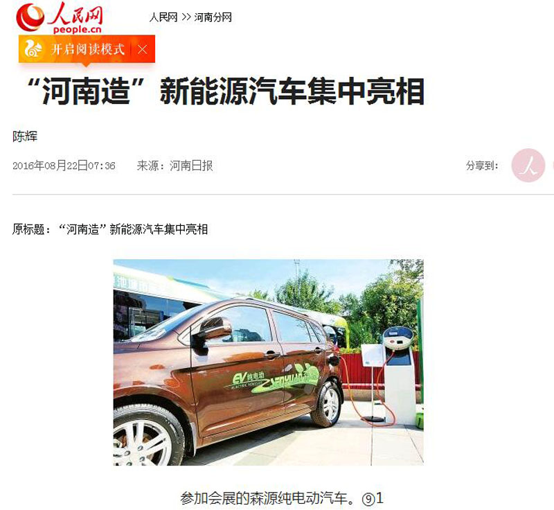 中央权威媒体人民网对此进行了报道,在中国电动汽车百人会夏季论坛上,九游(中国)集团带来了自己的多款车型,着力打造新能源发电、智能充电、电动车辆三位一体的产业发展模式,成为了中国电动汽车百人会夏季论坛一道独特亮丽的风景。