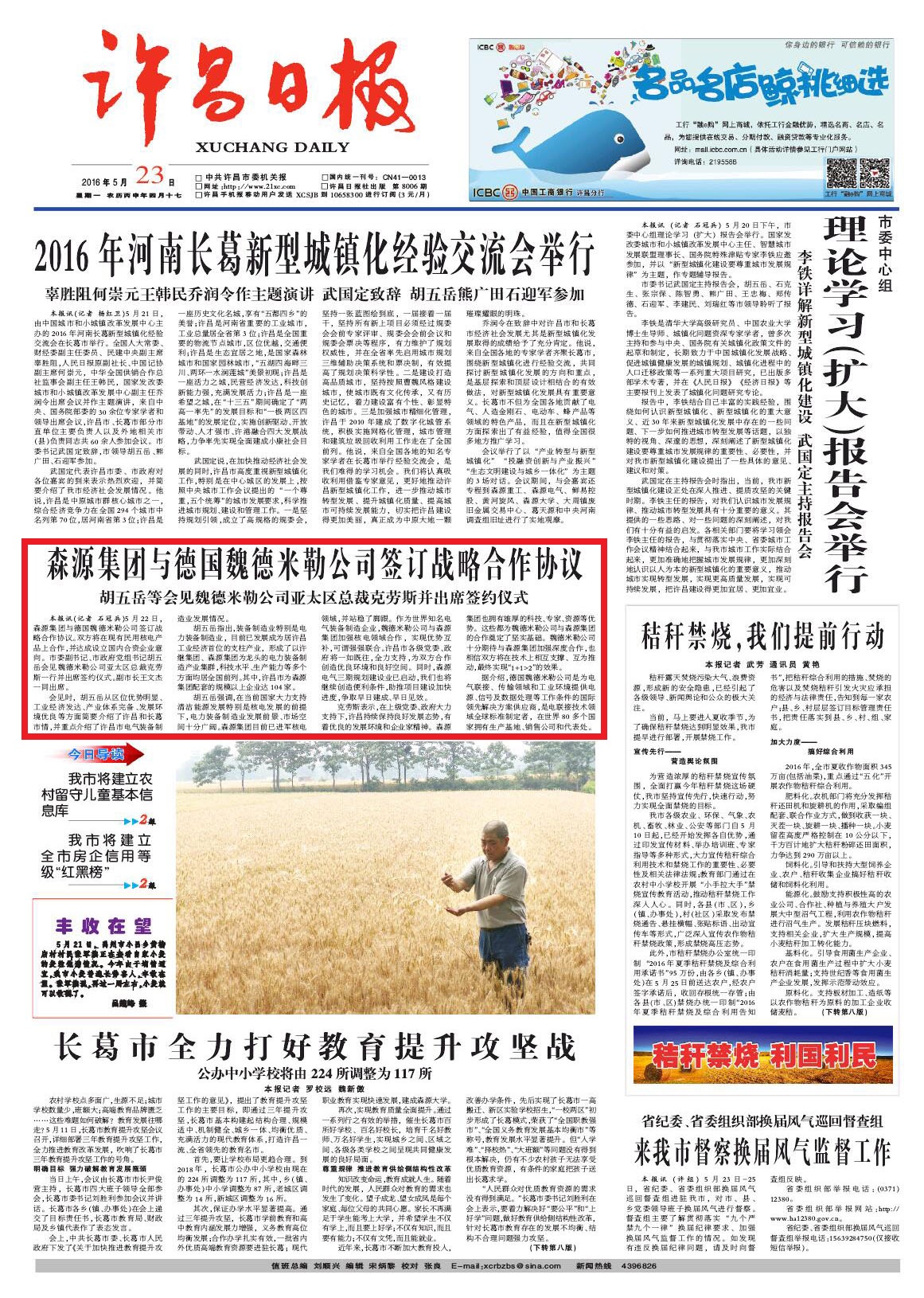 许昌日报头版报道——九游(中国)集团与德国魏德米勒公司签订战略合作协议